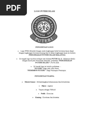 Logo Puteri Islam Doc Document - Terdapat 4 warna yang terdapat di dalam logo ppim iaitu. Hari ini saya akan berkongsi tentang persatuan unit beruniform bagi pergerakan puteri islam Malaysia PPIM. Logo PPIM dibentuk dengan suatu lingkungan bulat berwarna hijau diapit dengan lingkungan berwarna kuning dan di dalam lingkungan hijau itu bertulis PERGERAKAN PUTERI ISLAM MALAYSIA Di tengah logo tersebut terdapat satu bulatan PUTIH dan di dalamnya ditulis dengan huruf jawi Permulaan daripada perkataan PERGERAKAN PUTERI ISLAM.